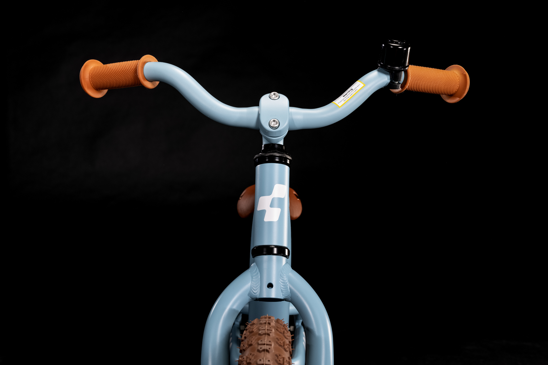 Clever durchdachter Rahmen mit tiefem Einstieg und viel Schritt- und Bewegungsfreiheit. Scharfe Kanten wurden abgerundet und der Lenkereinschlag schützt vor schlimmeren Verletzungen. Der Rahmen des Cubies ist aus 6061er Aluminium und somit leicht und perfekt auf die Physiologie von Kindern abgestimmt. Er schenkt Bewegungsfreiheit und somit Selbstvertrauen – besonders wichtig für die ersten wackeligen Fahrversuche. Farblich in einem hellen Blau (lightblue´n´white)