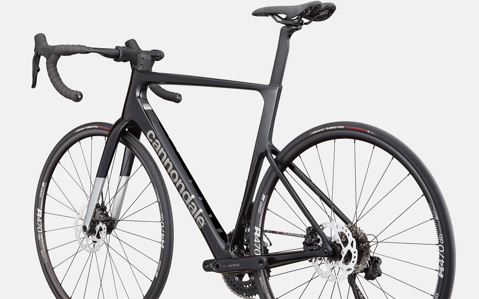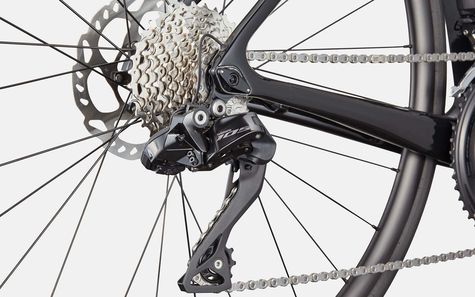 Leichter Cannondale Carbonrahmen, komfortabel und steif. Mit aerodynamischem Design.