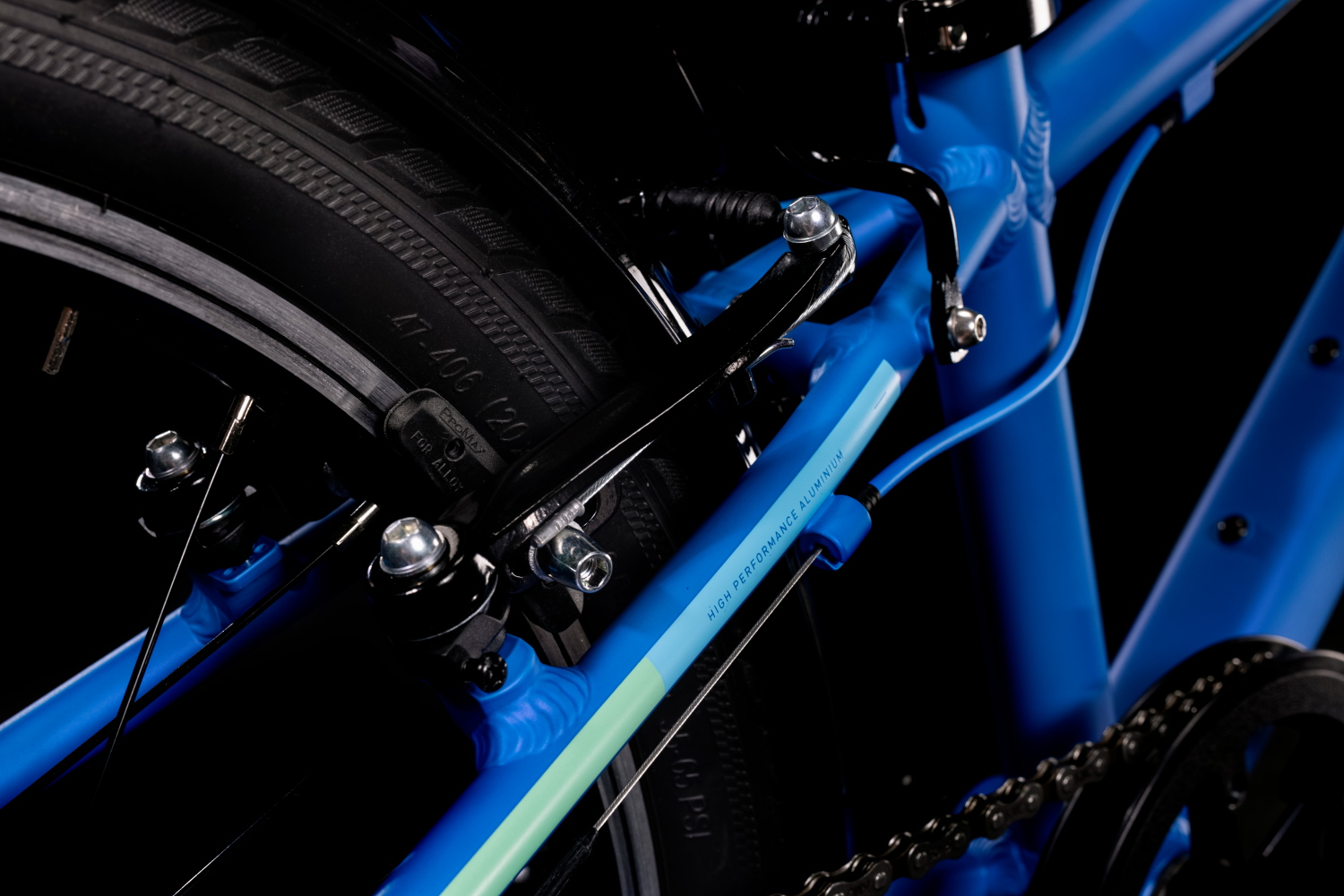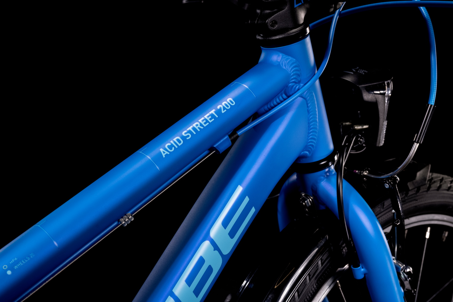 Hier hat CUBE eine 7-fach Schaltung und leistungsstarke, einfach zu bedienende V-Bremsen verbaut. Die Bremshebel sind extra für kleinere Hände ausgelegt. Die Vorderbremse verfügt sogar über einen Power Modulator, der allzu enthusiastisches Bremsen reguliert und Stürze effektiv verhindert. Wenn der Anstieg mal etwas steiler wird, dann unterstützt das große 34T-Ritzel die kleinen müden Beine. All das zusammen macht das Acid 200 zum idealen Einstiegsbike - für den ersten Offroad-Spaß mit Mama und Papa. Da wir hier jedoch ein Street-Modell haben, muss auf die alltagstaugliche Ausstattung nicht verzichtet werden! Lange Schutzbleche, ein stabiler Gepäckträger, der Seitenständer und das dynamogespeiste Beleuchtungssystem - es wurde an alles gedacht, was Nachwuchsradfahrer glücklich macht.