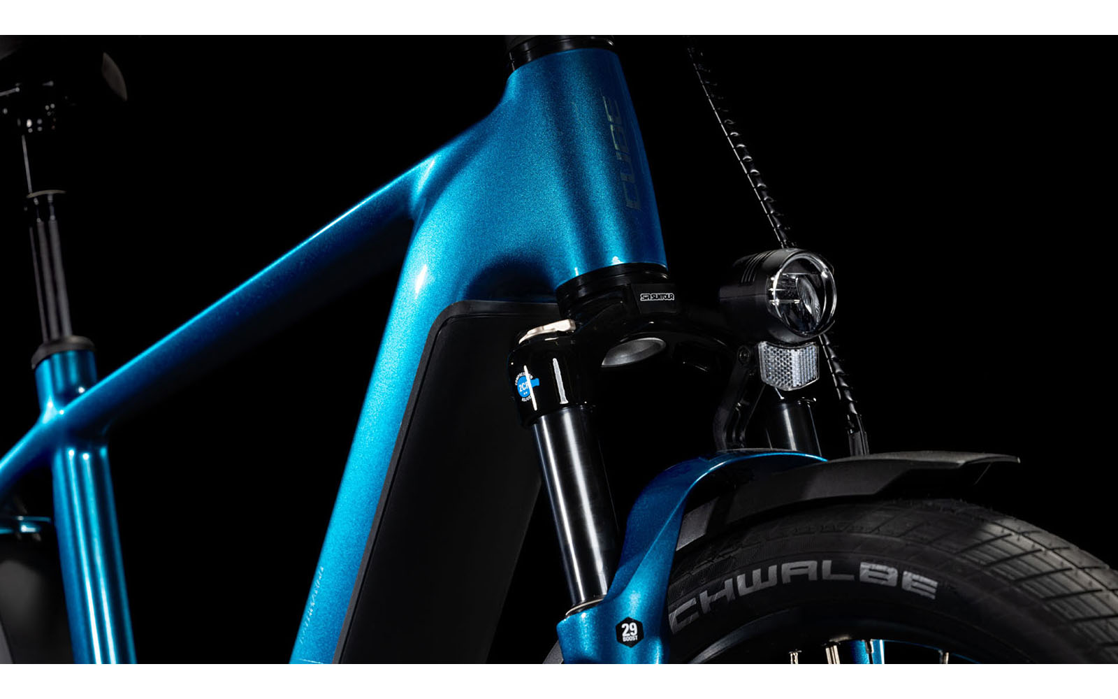 Cube hat hier viel Wert auf die Themen Komfort, Vielseitigkeit und Langlebigkeit gelegt. Der hochkapazitive neu Bosch Akku bietet mit stolzen 800Wh jede Menge Power und ist unscheinbar im Unterrohr platziert. Ein Rahmen, quasi um den Bosch Antrieb herum designt. Extrem elegant gelöst und für Sie praktisch im Handling. Dank des konifizierten Steuerrohrs kontrollieren Sie das Bike sicher und präzise. Für ein geniales Handling sorgt der tiefe und zentrale Schwerpunkt – noch dazu bringt das dem Kathmandu Hybrid EX auch eine unfassbar gute Optik. Die innenverlegten Züge tragen ebenfalls dazu bei. Dank Efficient Comfort Geometry sind selbst lange Ausfahrten und viele Stunden im Sattel komfortabel zu meistern.