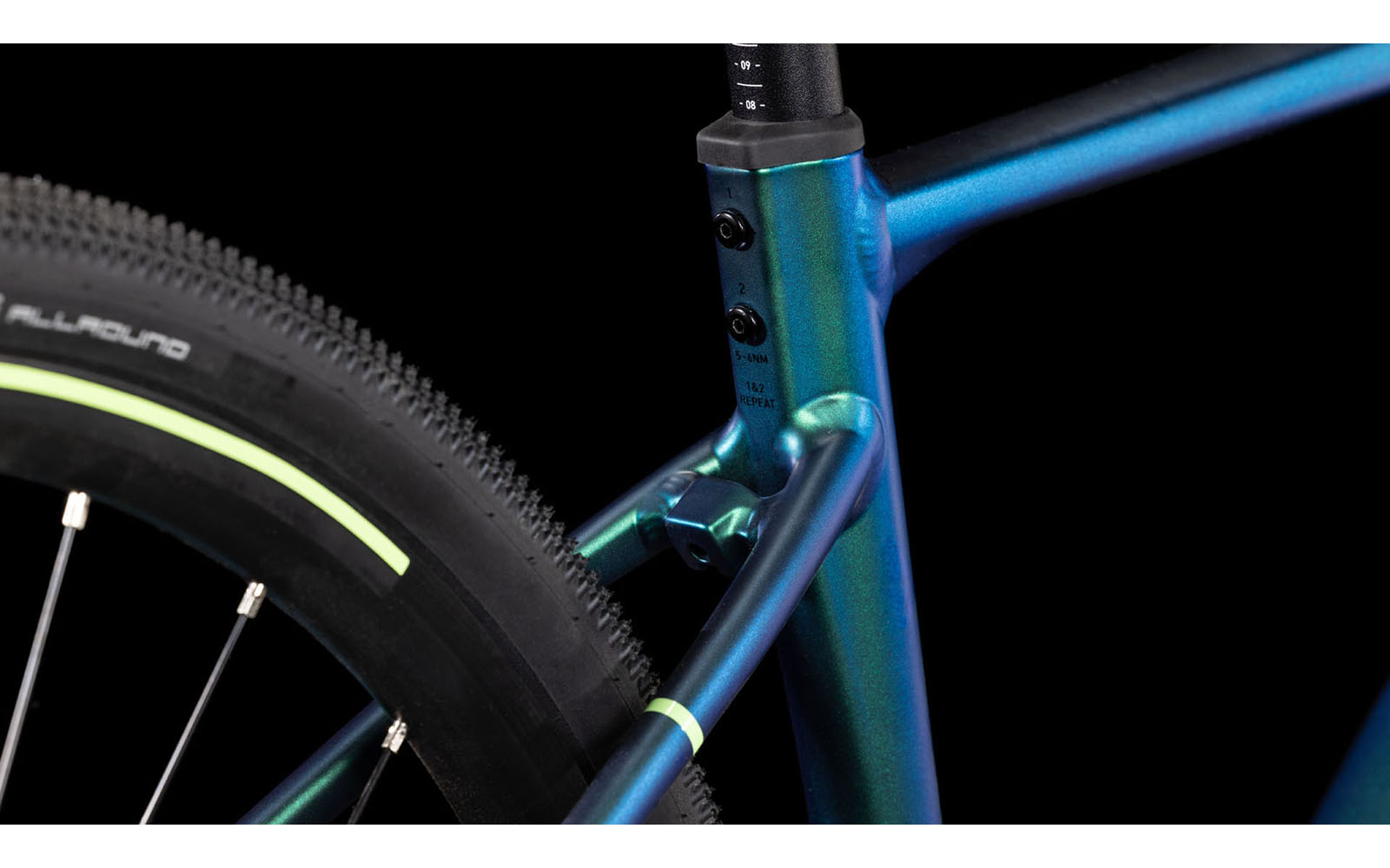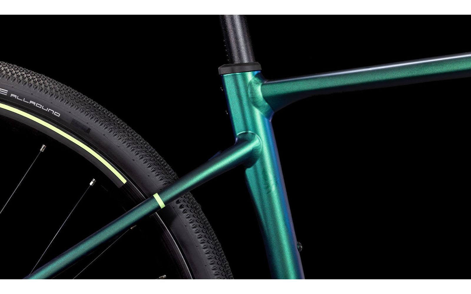 Aluminium-Superlite mit Gravel Comfort Geometry mit Vollcarbongabel, hier in tollem Grün-Ton. Inspiriert von Cubes Renn- und Cyclocross-Rädern, gespickt mit ein paar MTB-Skills, die ein Gravelbike eben braucht. Und das alles nur in einer Nummer kleiner, gemacht für die Nachwuchstalente, das ist das Rookie.
