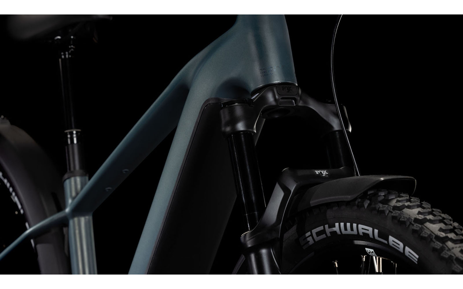 Behalten Sie die Kontrolle, dank des tollen Handlings dieses Reaction Hybrids - selbst auf kniffligen, ruppigen Trails. Eine Shimano 12-Gang XT Schaltung sowie hydraulische XT Scheibenbremsen. Die Fox 34 AWL Float Federgabel federt Schläge von ruppigen Strecken komfortabel ab und macht so auch den Ausflug auf den Trail zum Vergnügen. Dazu Newmen Performance 30 Laufräder bestückt mit Schwalbe Smart Sam Reifen. Diese bieten top Grip und ein angenehmes Fahrgefühl. Zum Antrieb: Hier platziert CUBE den geräuscharm arbeitenden CX Motor von Bosch, der von einem starken PowerTube Akku mit 800Wh angetrieben wird. Dazu das Kiox Display. Da ist das Grinsen im Gesicht schnell garantiert. On top eine versenkbare Sattelstütze für zuverlässiges Handling auf schwierigeren Trails. Und bei der Allroad-Variante ist alles dran, was es für die Alltagstauglichkeit braucht: Schutzbleche, Seitenständer, Licht - check.