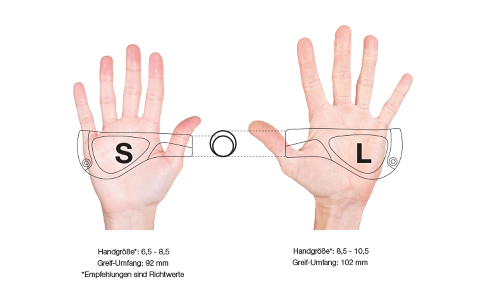 Behalten Sie die volle Kontrolle über ihr Rad und fühlen Sie sich wohl, Ergon kann hierzu viel beitragen. Damit der Griff zu Ihrer Handgröße passt, beachten Sie bitte die Griffweite. Ihre Hand sollte den Griff nicht komplett umschließen. Eine größere Hand benötigt die Griffweite L (large), die kleinere Hand einen S-Griff (small).