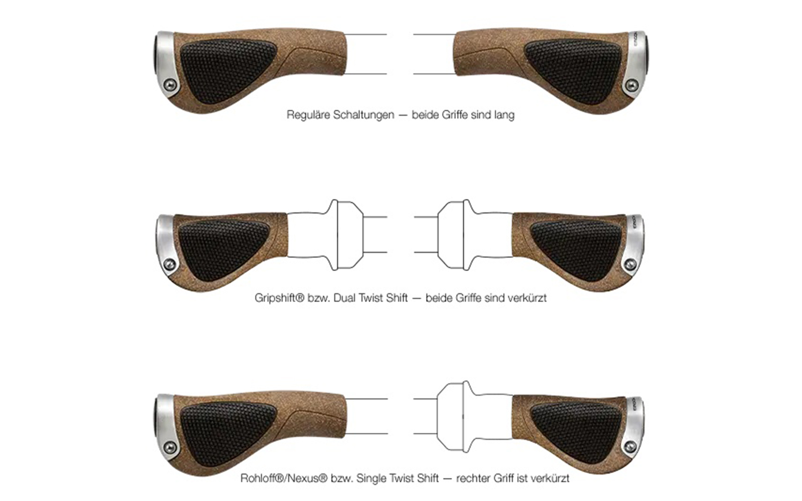 Griffmodell: Gripshift®, beide Griffe sind verkürzt. Unter den Detailbildern sehen Sie den Unterschied, was es mit der Griffwahl bezüglich des Schaltungstyps auf sich hat.