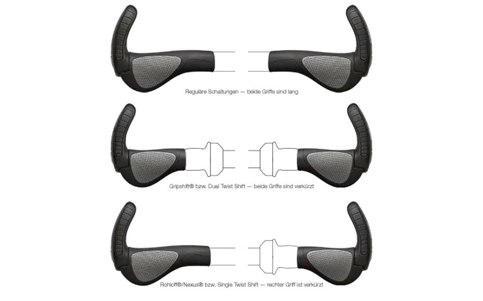 Einsatz: Touring, E-Touring, MTB-Touring, E-MTB, FitnessGewicht: ca. 260g / PaarZwei antiallergische GummimischungenKlemme: Geschmiedet, AluminiumBarends: Glass Fiber Composite mit gummierter GriffflächeAuch freigegeben für CarbonlenkerGriffmodell: Gripshift®, beide Griffe sind verkürzt. Unter den Detailbildern sehen Sie den Unterschied, was es mit der Griffwahl bezüglich des Schaltungstyps auf sich hat.