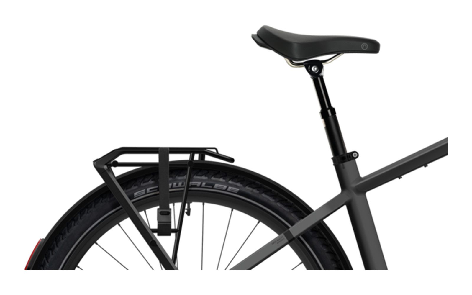 Gepäckträger und Seitenständer sind vorhanden. Schwalbe Reifen, Scheinwerfer, winkelverstellbarer Vorbau, Suspension Sattelstützte, Abus Schloss. Was will man mehr? Ach ja, zuverlässige Bremskraft natürlich, dafür sorgt die Shimano Scheibenbremse.