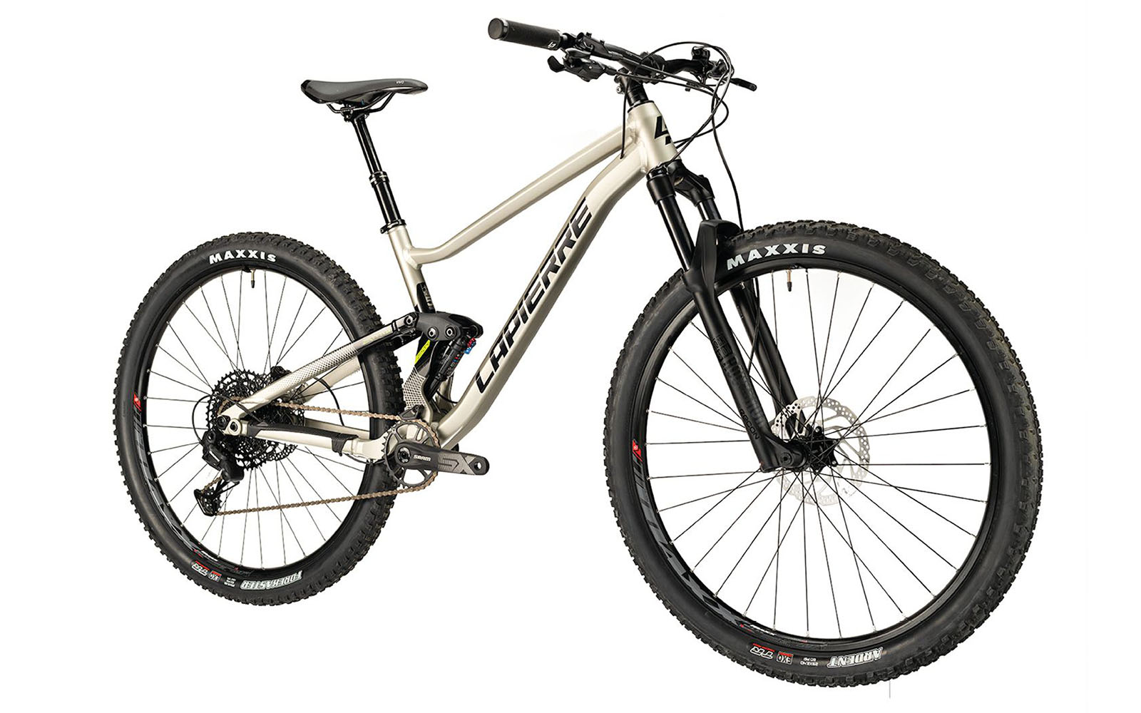 Für den Federweg ist eine Suntour 120mm Boost-Gabel zuständig. Am Heck arbeitet der Lapierre-eigene AF2 Dämpfer. Die Aufgabe der Gangwechsel wird zuverlässig von der Shimano Deore 11-Gang Schaltung übernommen. Dazu hydraulische Shimano Bremsen. Der Rise-Lenker in ordentlicher Breite sorgt für Fahrstabilität. Die Dropper Post nimmt der plötzlichen Bergabpassage den Schrecken. Auf den 29 Zoll Laufrädern befinden sich Maxxis Reifen.