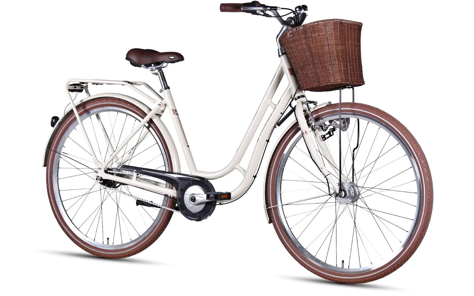 Leichter Aluminium-Rahmen in Wave-Form mit einem tiefen, bequemen Einstieg. Auf seinen 28 Zoll Laufrädern kommen Sie bestens voran. Hier in der Farbe Cream metallic.
