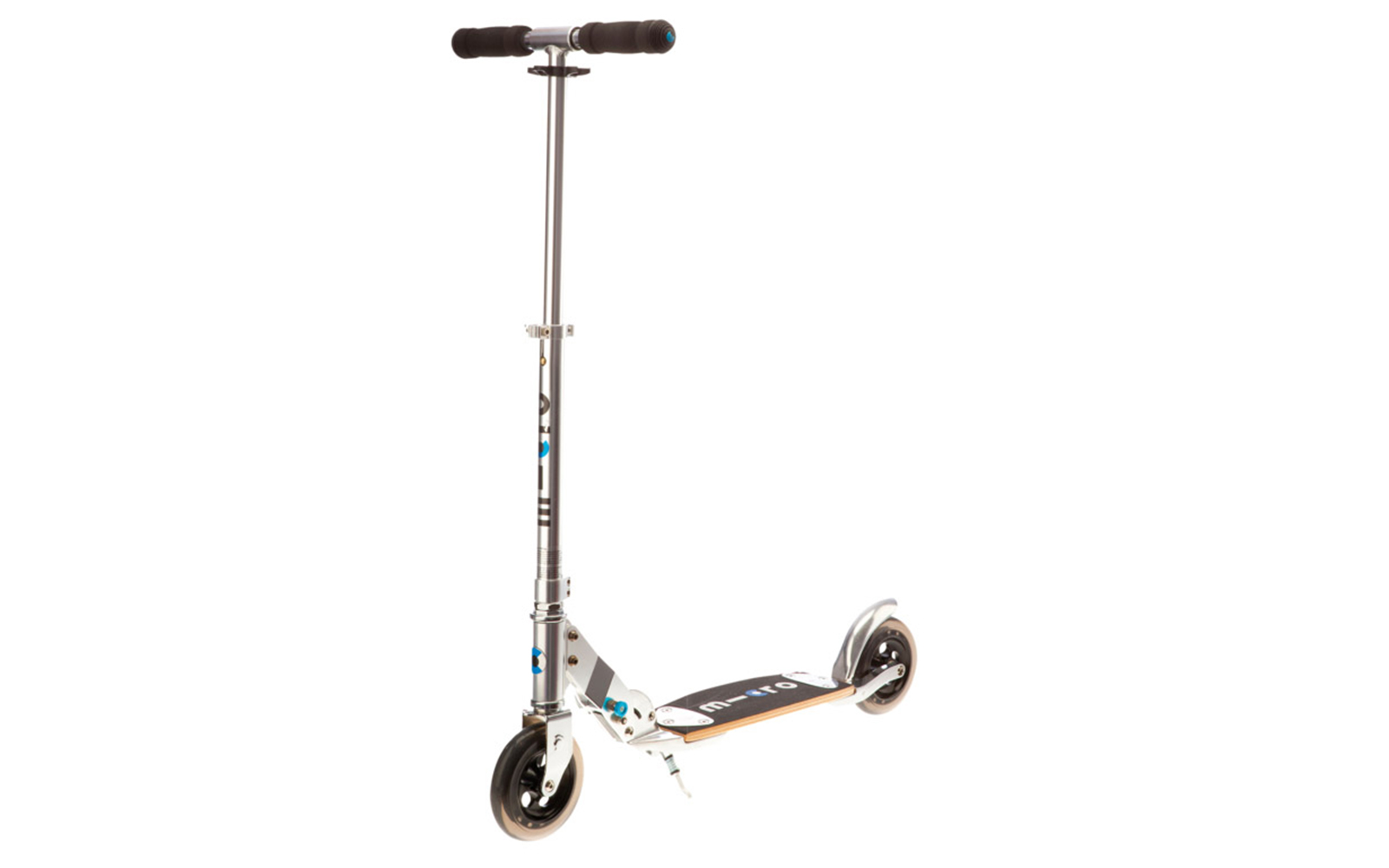 Extra dicke 145mm Rollen und ein patentiertes Holz-Fiberglasdeck machen den Scooter Flex 145 aus. Er absorbiert kleinere Unebenheiten wie Fugen oder Schlaglöcher. Das Trittbrett schwingt fleißig mit und entlastet den Fahrer auf langen Fahrten merkbar. Ob auf längerem Schulweg oder mitten durch die Stadt auf schnellem Weg, der Flex 145 von Micro ist der ideale Begleiter. Nicht zuletzt aufgrund seiner Vorrichtung für einen Tragegurt (optionalen). Auch der praktische Kickständer zum einfachen Abstellen fehlt hier nicht.