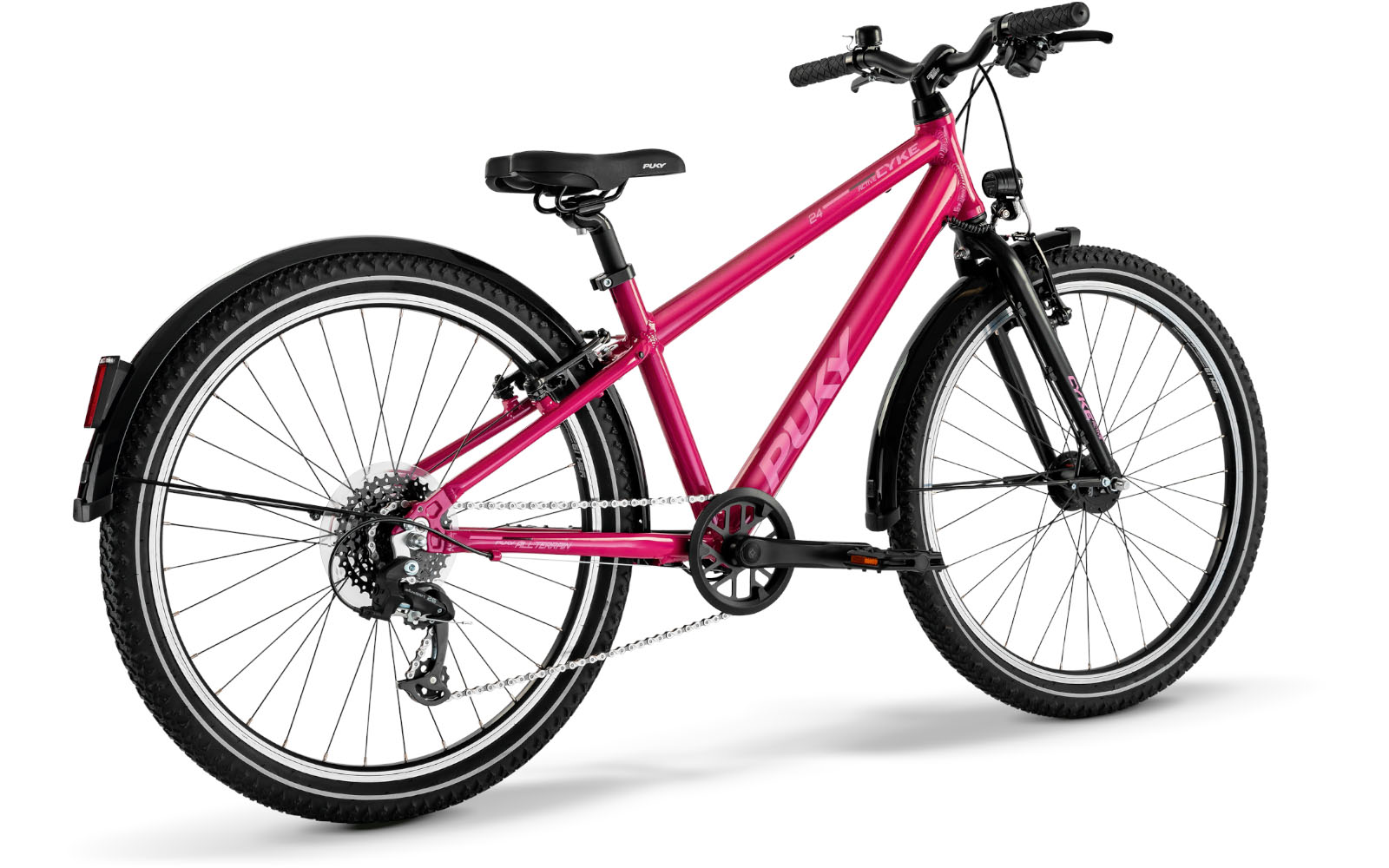 Das Puky Cyke 24-8 active Kinderfahrrad ermöglicht eine schnelle Fortbewegung auf Straßen sowie auf Feldwegen. Für Kinder ab 8 Jahren im Straßenverkehr der perfekte Begleiter. Ein breites Spektrum haben die Kids mit der 8-Gang Kettenschaltung. Berge erklimmen oder mal richtig Tempo auf gerader Strecke aufnehmen, sollten mit diesem Bike kein Problem mehr sein. Gebremst wird dieses Gefährt mit den kräftigen V-Brake Felgenbremsen vorn und hinten. Bewusst hat das Puky auf einen Gepäckträger verzichtet, um den sportlichen Charakter zu unterstreichen. Trotzdem darf mit dem Bike nach StVZO am Straßenverkehr teilgenommen werden.