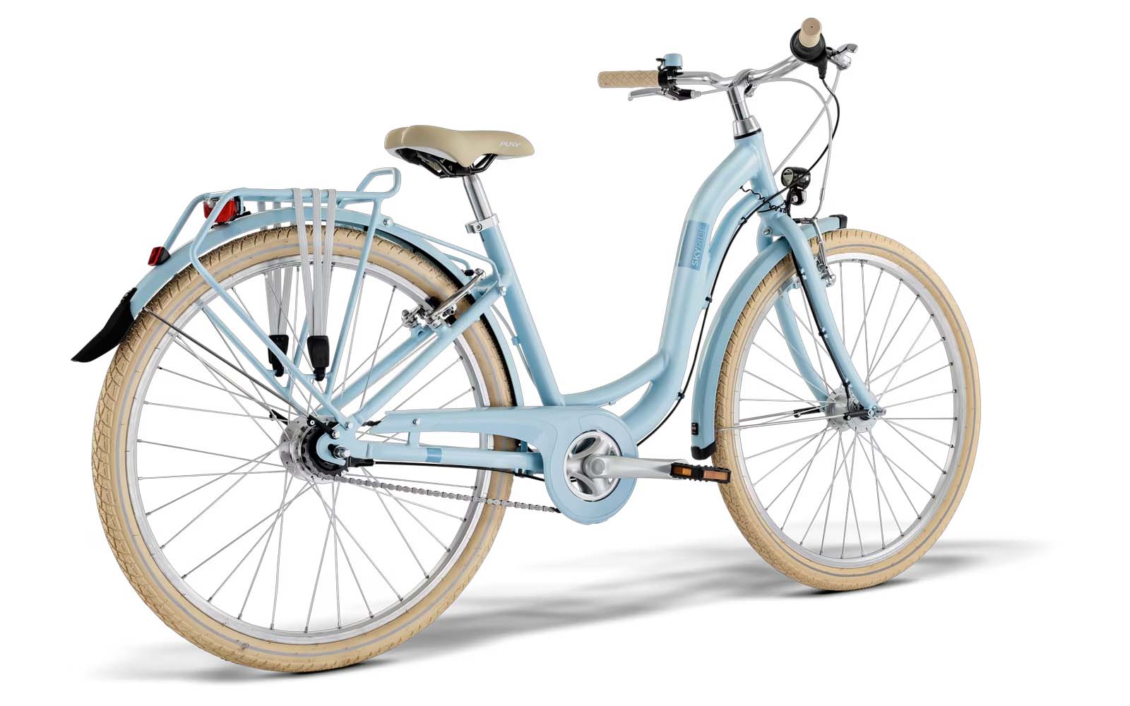 Ausgestattet mit unkomplizierter 7-Gang-Nabenschaltung mit Freilauf. Die V-Bremse sorgt für die gekonnte Verzögerung. Weiterhin erwähnenswert sind der Gepäckträger mit Spanngurt, die Lichtanlage, die Reifen mit Reflexstreifen und der Seitenständer.