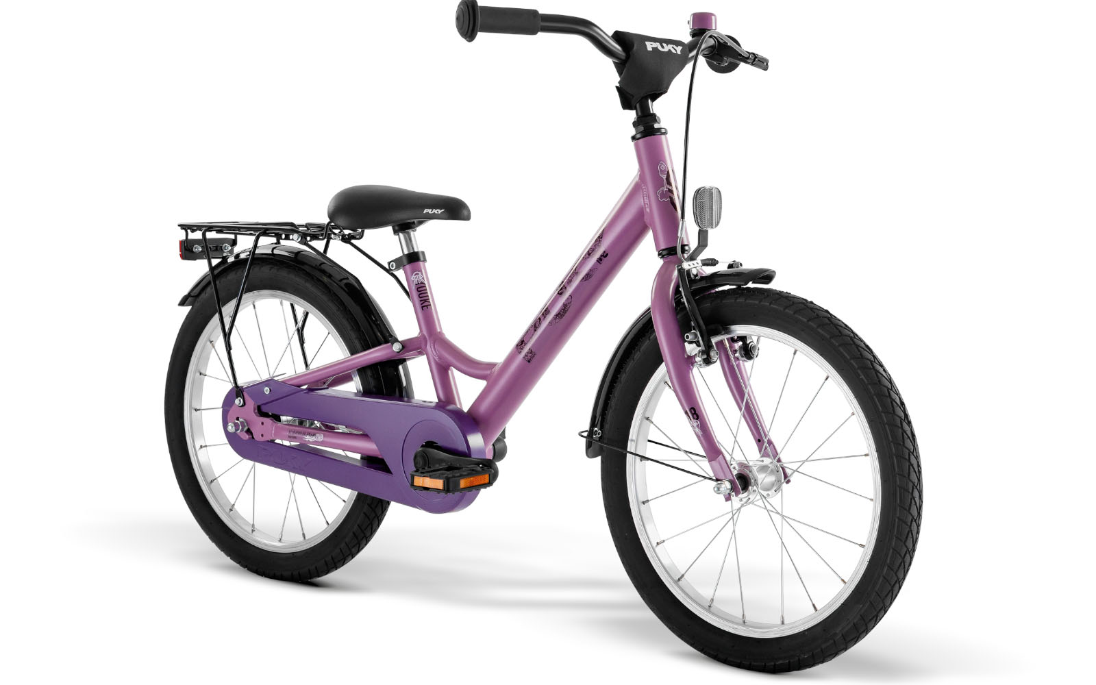 Leicht, robust und rostfrei. Das lila-farbene Youke 18 Zoll verfügt über einen leichten Aluminiumrahmen und Komponenten, wie Lenker, Felgen und auch Kurbel. Hier wurde selbstverständlich in jeder Hinsicht eine kindgerechte Ergonomie bedacht. Die stoßfeste Lackierung des Rahmens lässt das Rad lange erstrahlen. Der tiefe Rahmen lässt die Füße schnell auf den Boden kommen und sicher absteigen. Die bunte Farbenwelt der Puky Youke Räder lässt keine Farbwünsche offen.