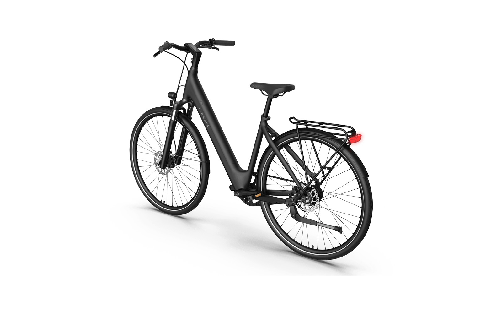 Schlank und agil ist das Tenways CGO800S. Hier in der Farbe "Midnight Black" mit tiefem Rahmen. Hier kommt Ihnen kein Oberrohr in die Quere. Das Tenways läuft auf 28 Zoll Laufrädern, wie es üblich ist für schnelle Stadt-Flitzer. Der Akku ist leicht aus dem Oberrohr entnehmbar.