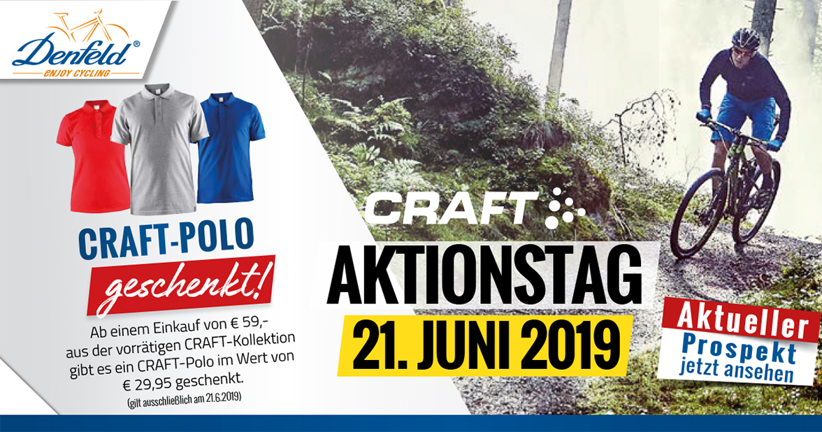 Am 21.06.2019 gibt es ab einem Einkauf von € 59,- aus der vorrätigen CRAFT-Kollektion ein CRAFT Polo im Wert von € 29.95 geschenkt