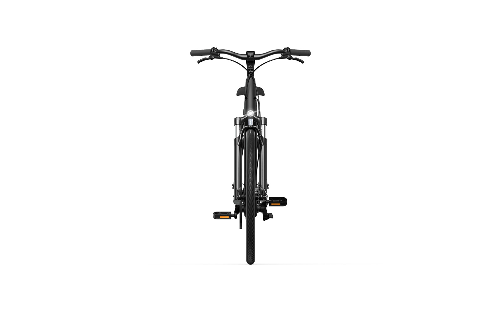 Schlank und agil ist das Tenways CGO800S. Hier in der Farbe "Midnight Black" mit tiefem Rahmen. Hier kommt Ihnen kein Oberrohr in die Quere. Das Tenways läuft auf 28 Zoll Laufrädern, wie es üblich ist für schnelle Stadt-Flitzer. Der Akku ist leicht aus dem Oberrohr entnehmbar.