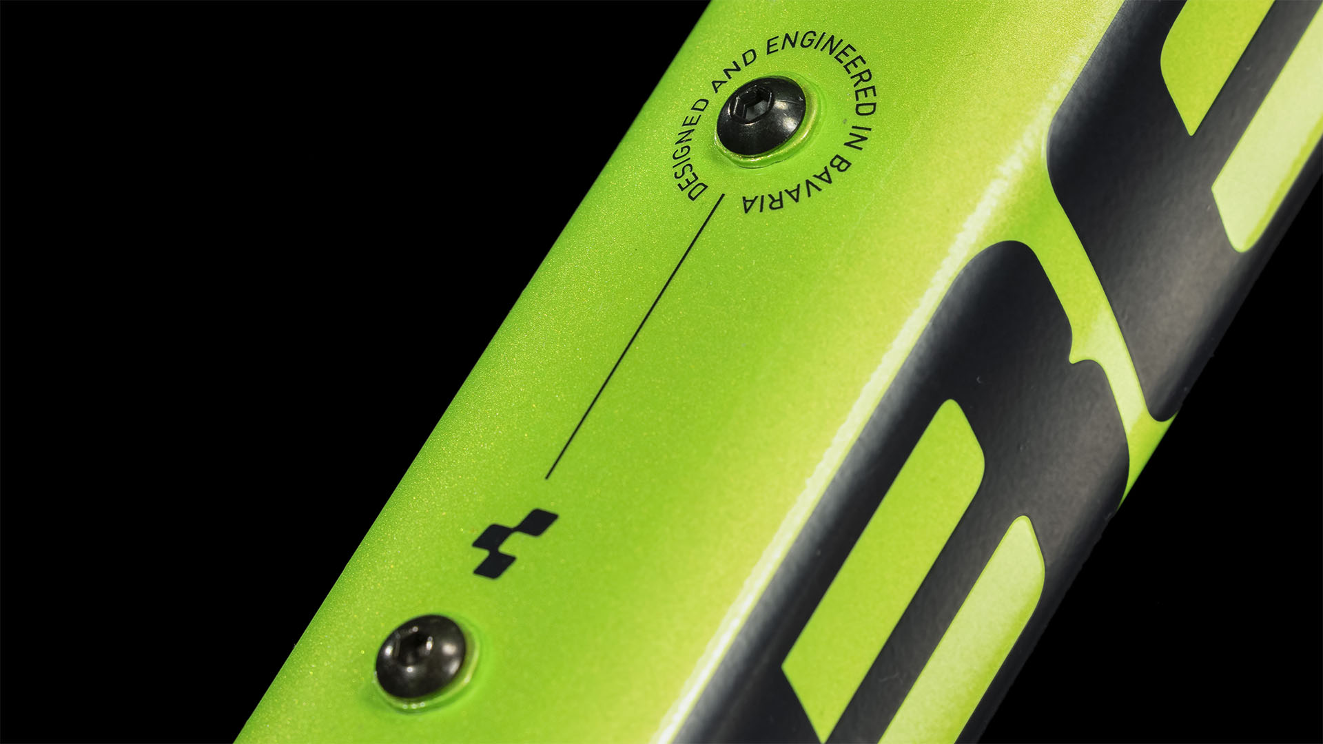 Der im Vorjahr bereits komplett überarbeitete Aim Rahmen besticht mit einem supercleanen Look. Verantwortlich dafür: Die im Smooth Welding Verfahren hergestellten Verbindungen am Steuerrohr und Sattelstützenprofil. Farblich überzeugt das grün/gelbe Bike selbstverständlich auch (mistygreen´n´black) - ein echter Hingucker. Außerdem hat Cube ihm ein geschraubtes Tretlager verpasst und die Züge ins Innere verlegt, damit die Züge somit lange arbeiten und leicht gewartet werden können. Die überarbeitete Geometrie hat ein niedrigeres Oberrohr für noch zuverlässigeres Handling und lässt viel Platz für breite, griffige, komfortabel rollende 2.25 Zoll Reifen.