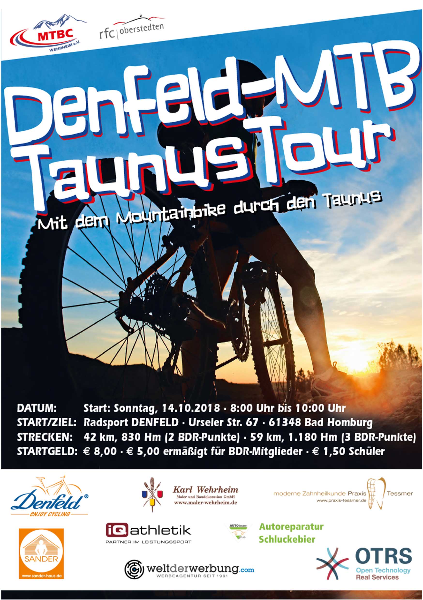 Radtourenfahrt - DENFELD Tour durch den Taunus 2023Redaktion | 16. August 2023Wir freuen uns schon wahnsinnig drauf: Die beliebte RTF "Denfeld Tour durch den Taunus" des RFC Oberstedten 1899 e.V. findet wieder statt, am 17.09.23...Mehr lesen -