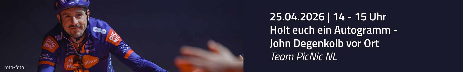 - Highlight 14 - 15 Uhr: John Degenkolb zu Besuch! Der Team PicNic NL Profi und Lokalmatador des Radklassikers wird hier vor Ort sein. Vielleicht kommt ihr sogar in den Genuss, dass John euch gleich morgens auf die PreRide Runden schickt und den Start-Appell gibt. In jedem Fall trefft ihr John aber von 14 bis 15 Uhr zur Autogrammstunde auf der Lapierre-Area im Außenbereich an. Wir freuen uns drauf!