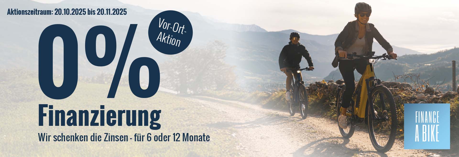 Profitieren Sie von der Finance a Bike 0 % Finanzierung bei einer Laufzeit von 6 oder 12 Monaten – und erfüllen Sie sich den Traum vom neuen Wunschbike ohne zusätzliche Kosten.